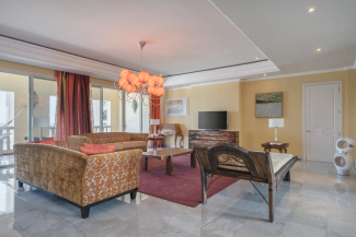 Accommodations at the Iberostar Grand Paraíso are nothing short of opulent, featuring spacious suites adorned with lavish furnishings, premium amenities, and elegant décor. Each suite boasts a private balcony or terrace, providing guests with breathtaking views of the pristine beach, lush gardens, or tranquil courtyards, ensuring a serene and indulgent retreat.